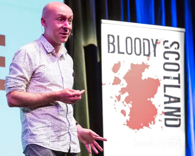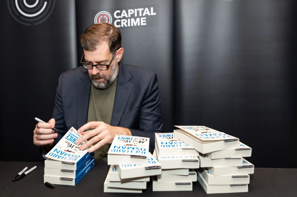 Caption: Best-selling crime novelist Richard Osman sighing books at Capital Crime and Chris Brookmyre appearing at Bloody Scotland